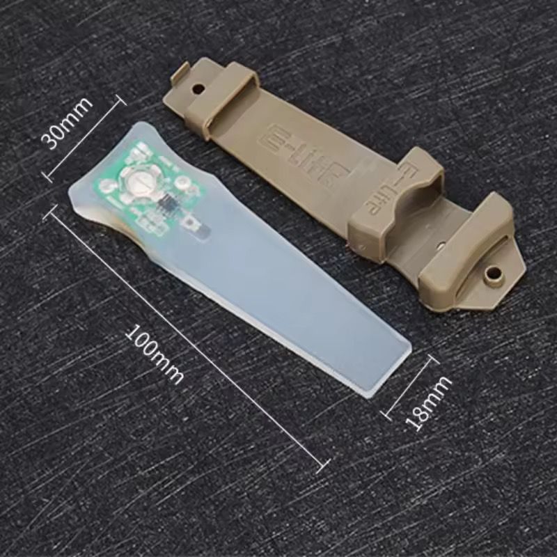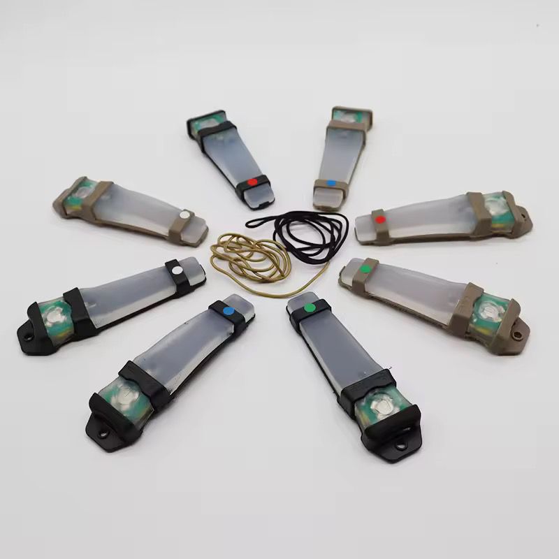 Su diseño flexible permite instalarla fácilmente en cascos tácticos, mochilas, bicicletas o equipamiento, así como utilizarla colgada mediante cordón para señalización personal. Funciona con batería CR2032, ofreciendo una autonomía prolongada y un formato liviano y de bajo perfil.