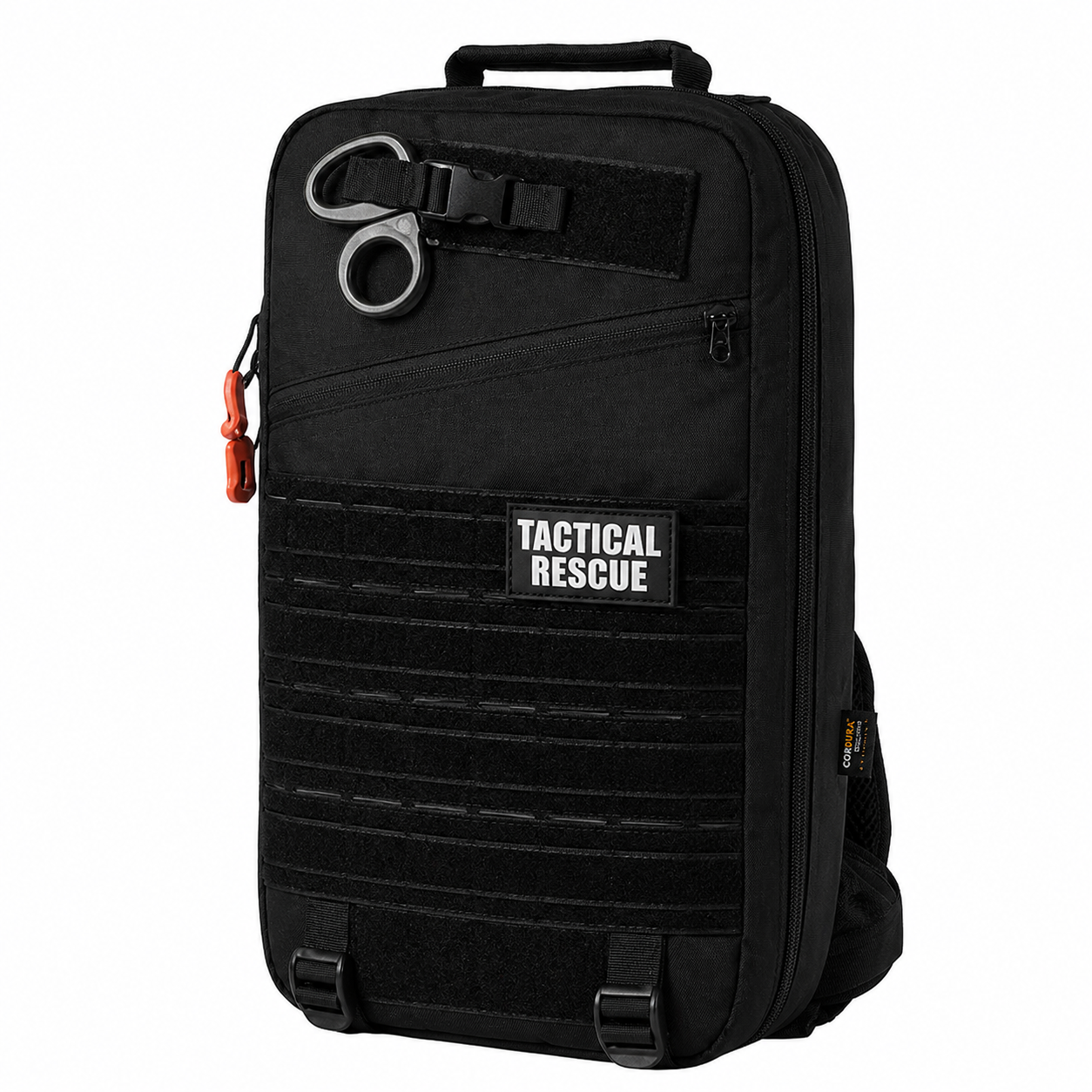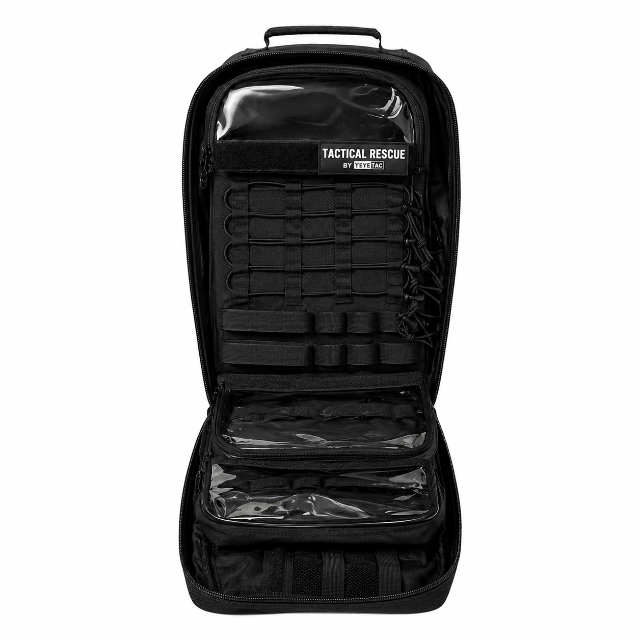 Mochila médica táctica de alta capacidad, diseñada para la organización eficiente de insumos en escenarios de respuesta a emergencias, operaciones tácticas y actividades outdoor.