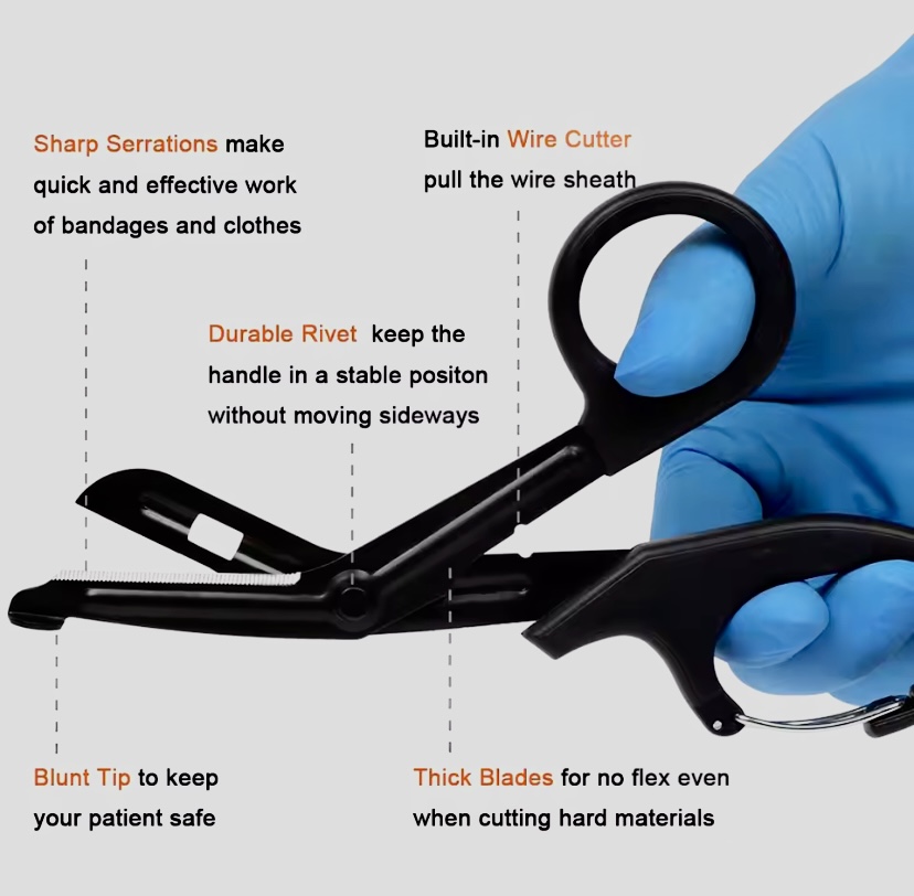 Herramienta esencial para todo operador táctico, rescatista o personal de primeros auxilios. Las Tijeras Tácticas de Trauma están diseñadas para cortar con rapidez ropa, cinturones, botas u otros materiales durante una emergencia médica o táctica. Su diseño compacto permite transportarlas fácilmente en el cinturón, chaleco o kit médico.